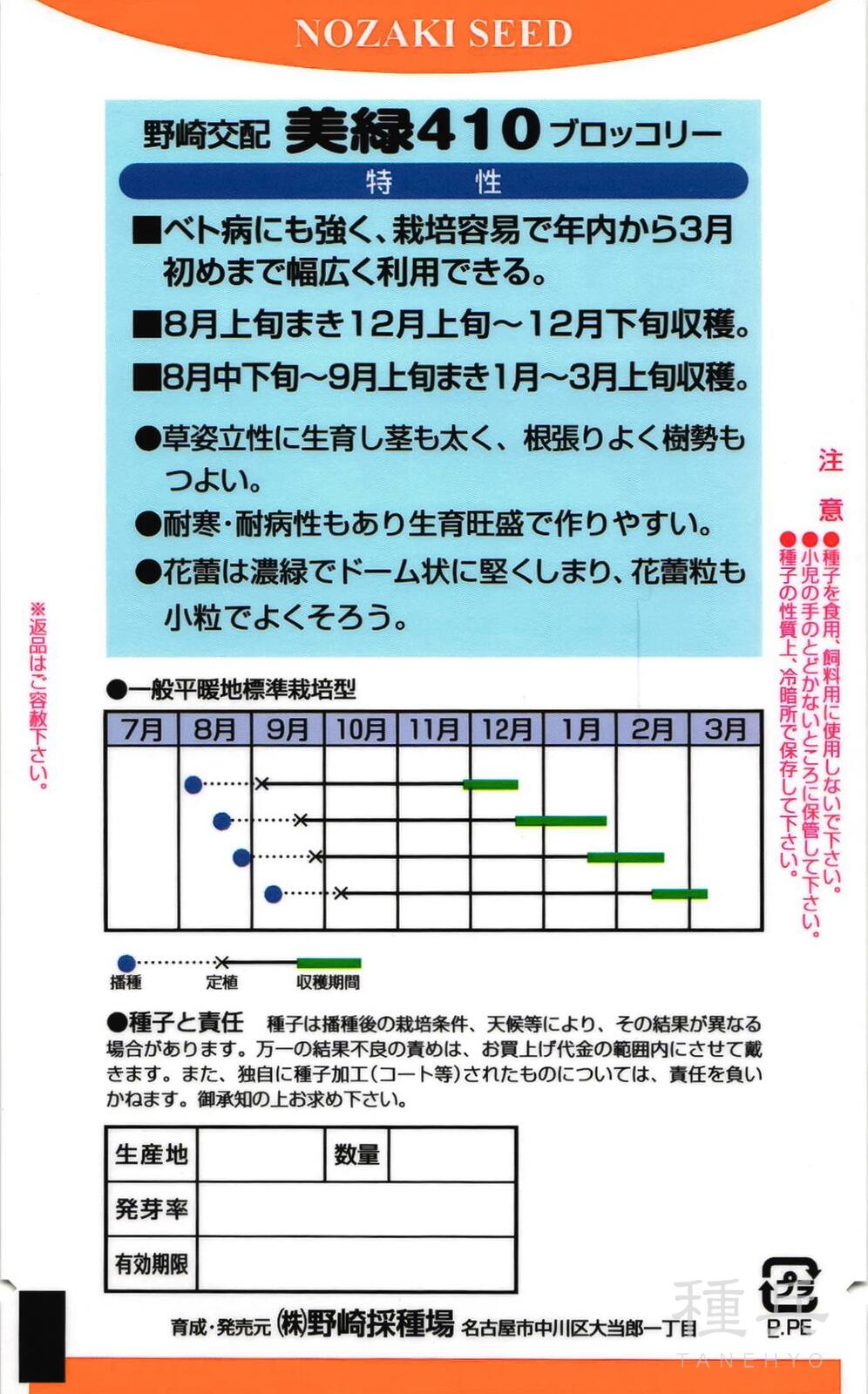 ●8月上旬まき12月上旬~12月下旬どり。8月中下旬~9月上旬まき1月~3月上旬どり。