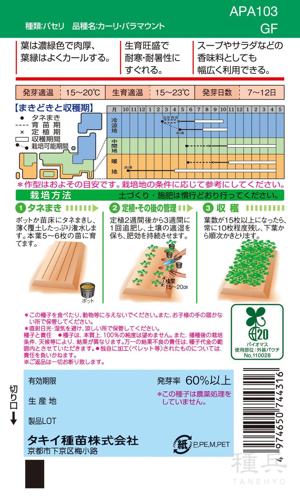 パセリ 種 『カーリ・パラマウント』 APA103 タキイ種苗