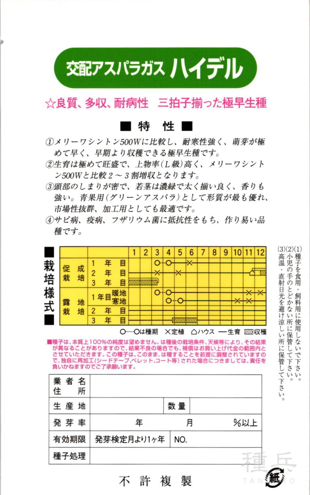 アスパラガス 種 『ハイデル』 カネコ種苗
