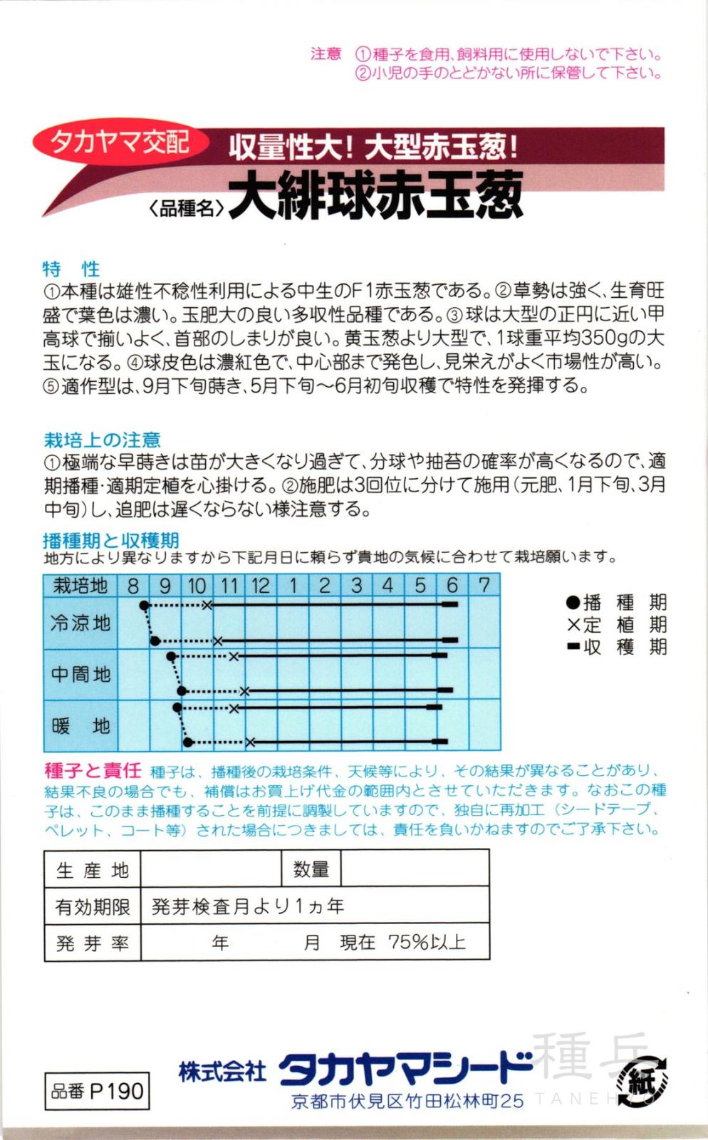 赤タマネギ 種 『大緋球赤玉葱』 タカヤマシード