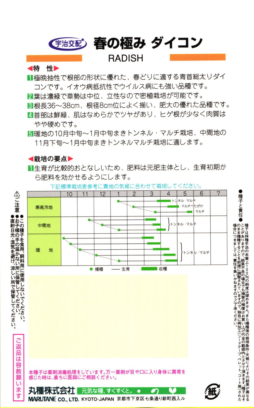 ◆栽培条件・天候等により生育に差が生じることがあり、また、結果が異なる場合があります。むやみな早まき遅まきを避け、適期の播種を心がけてください。