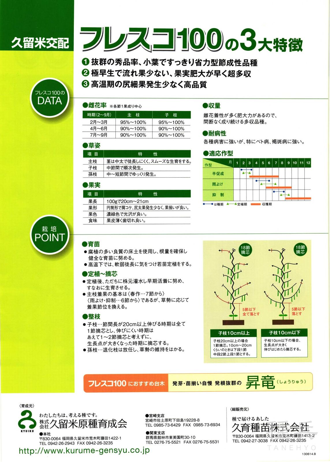 【収量】雌花着性が多く肥大力があるので、間断なく成り続ける多収品種。