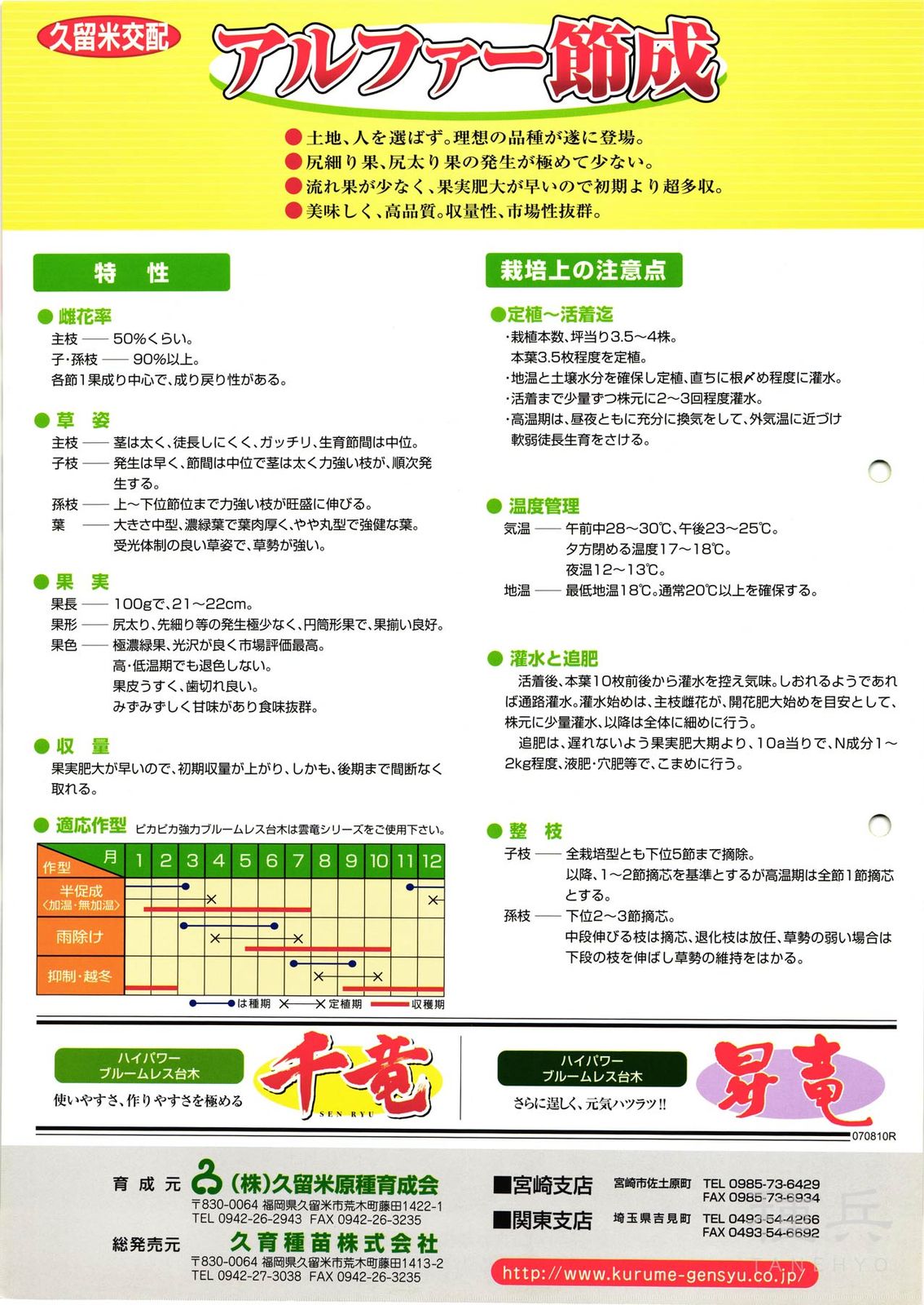 【収量】枝の雌花着生が良い、死果少なく、果実肥大に優れた多収品種。