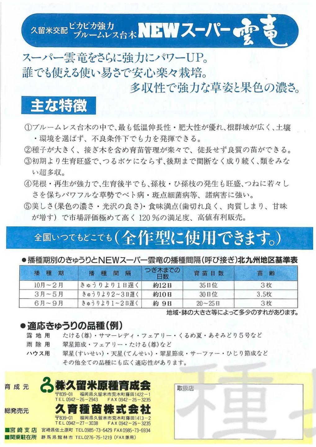 キュウリ台木(ブルームレス) 種 『NEWスーパー雲竜』 久留米原種